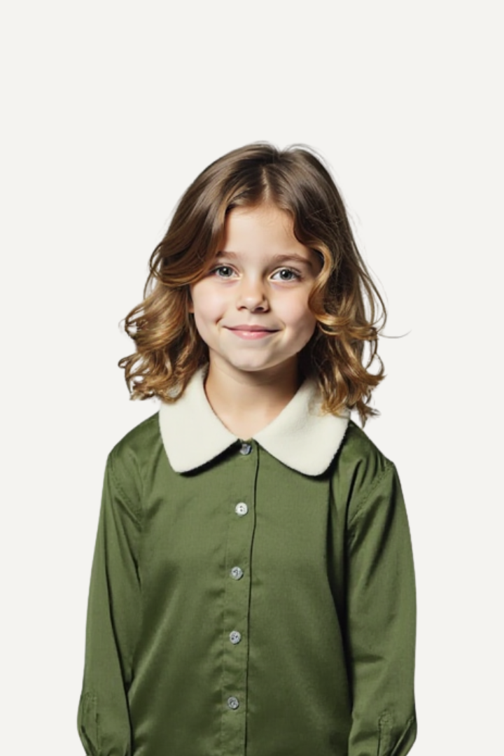 Only available here on our website!  This Topper Jacket is made from cotton baby corduroy and patchworked at the collar for a fun contrast. Made complete with a high-low hem and buttons as closure. This is a staple for their Fall/Winter outerwear collection!