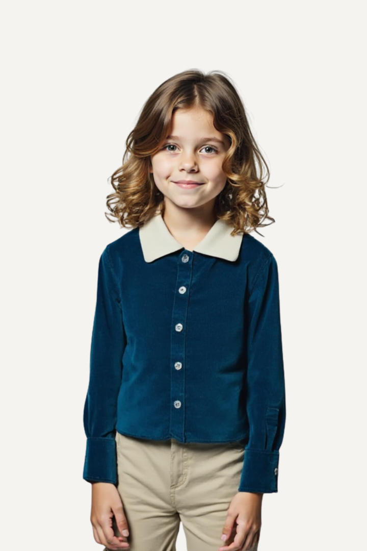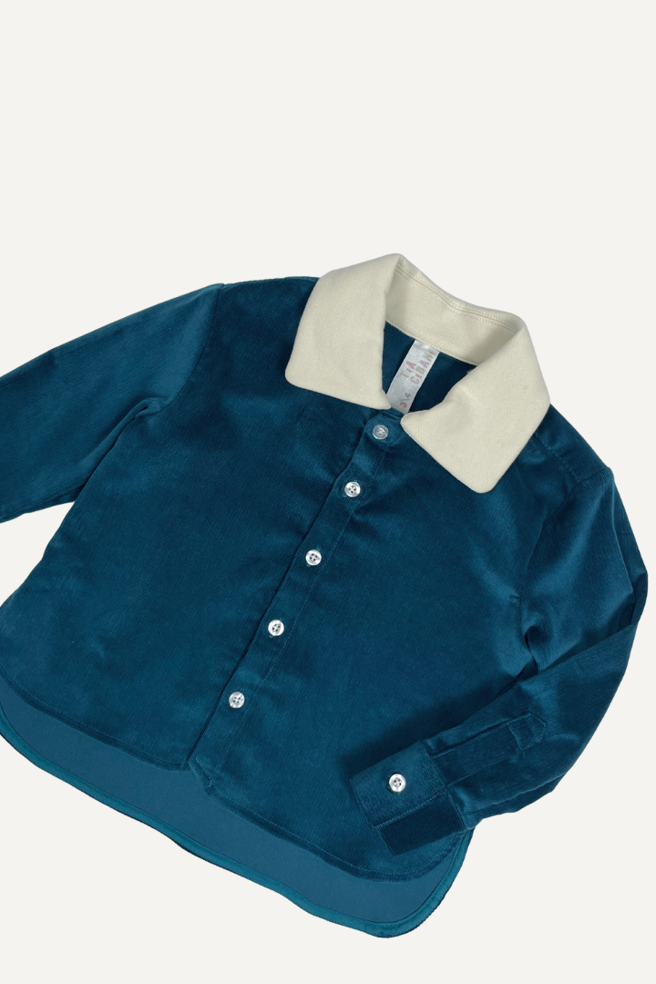 Only available here on our website! This Topper Jacket is made from cotton baby corduroy and patchworked at the collar for a fun contrast. Made complete with a high-low hem and buttons as closure. This is a staple for their Fall/Winter outerwear collection!