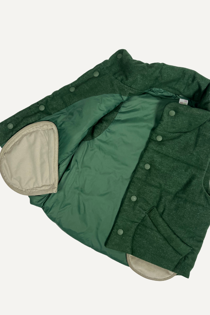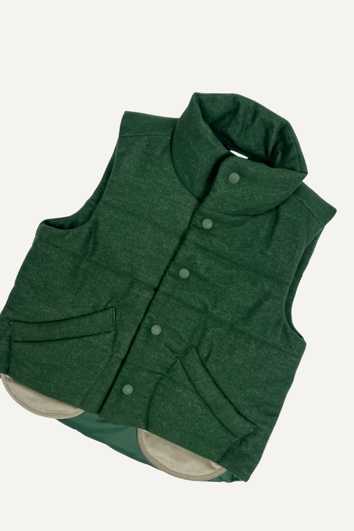 Only available here on our website! Our classic cozy vest features snaps and roomy slanted pockets with a pocket bag peering through at the hem. Made complete with padding and a high collar to keep them protected and warm. Makes for the perfect layering piece for the fall season!