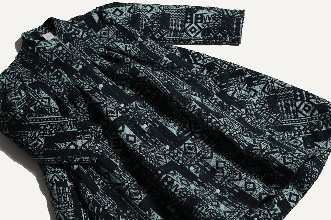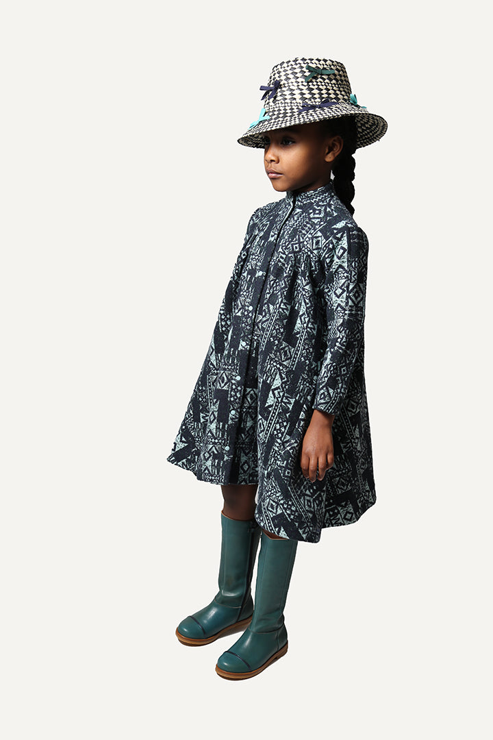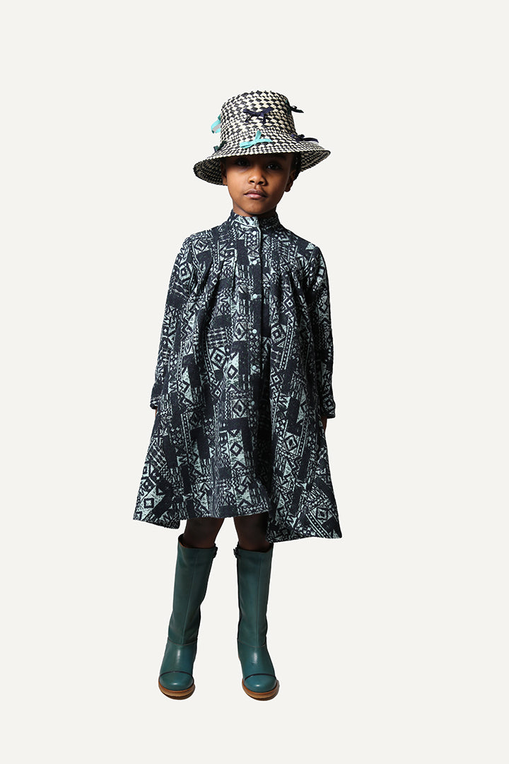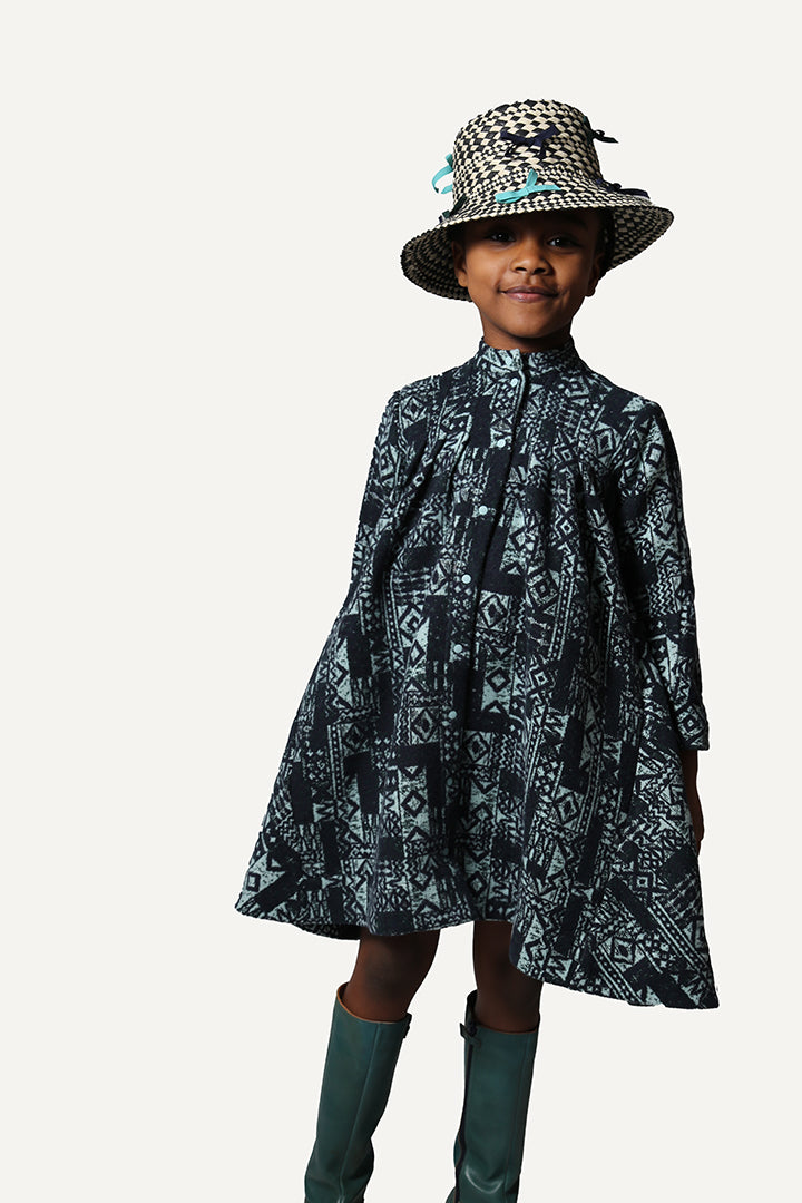 Pin-tucked at top, lightly pleated with a darling high-low hem, this oversized night shirt style dress is versatile, both perfect as occasional wear and everyday dress up. With snap buttons lining the center front for simple dressing and handy pockets at the sides, this mixtec jacquard frock is sure to be a sweet style for your little!