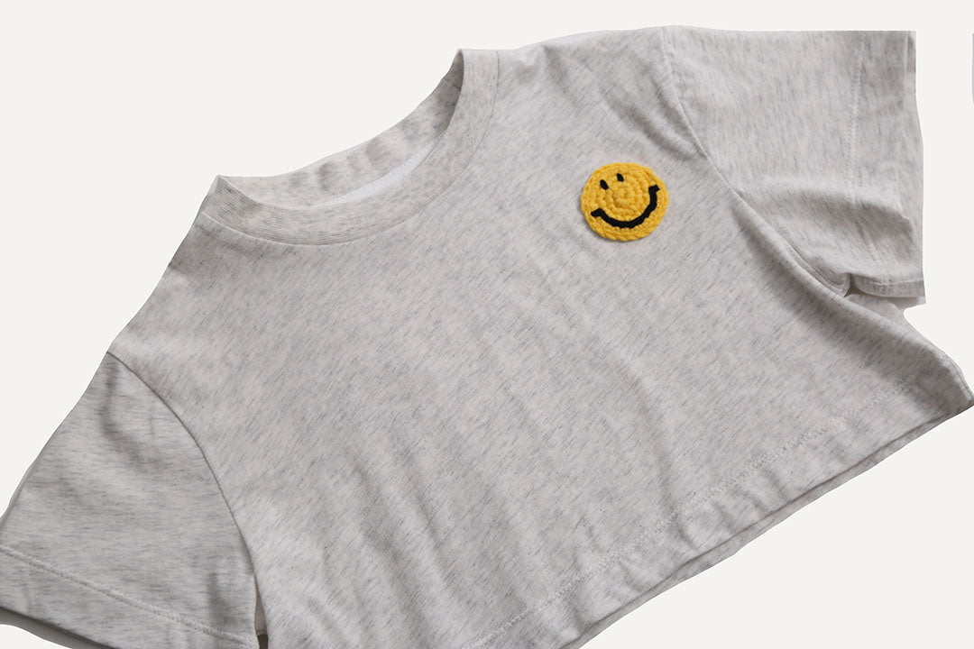This cropped tee is sure to make them smile! This ultra-fine jersey short sleeve tee features a comfortable ribbed neckline. Finished sweetly with an adorable crochet smiley face embellishment! Made perfect for layering underneath jackets and vests, or can be worn on it's own. Ideal for everyday adventures and available in an array of colors, it’s a comfy staple that brings fun to any outfit!
