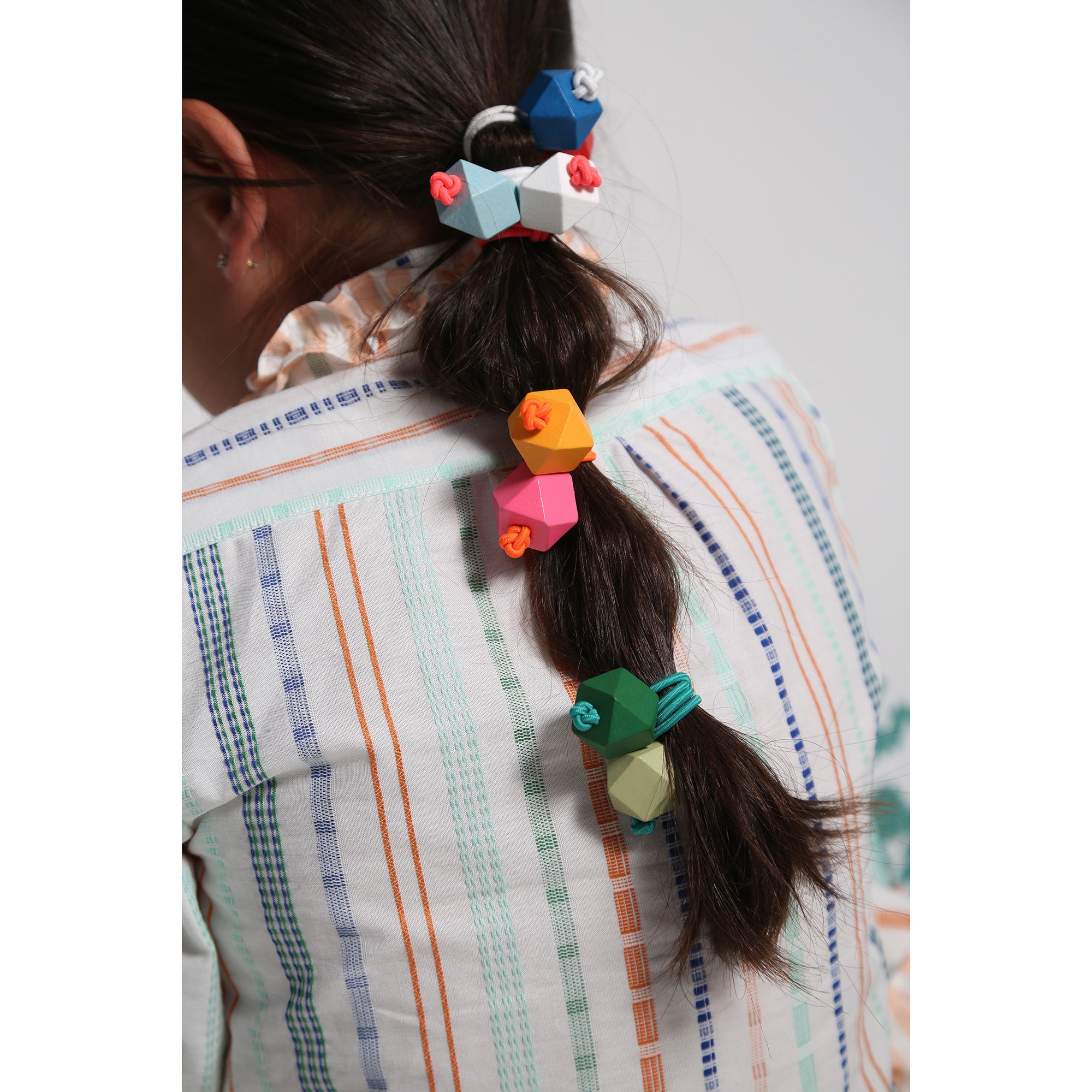 A set of 4 tokyo ties with colorful wooden beads. Add these delicate, vintage ties to any bun, braid, pigtail, or ponytail for the perfect hair accessory!
