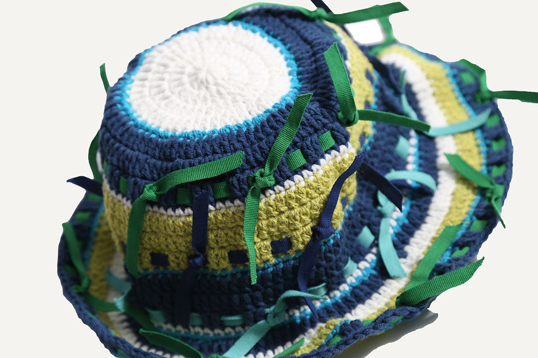 Thoughtfully crafted and handmade, this bucket hat will take your little one's outfits to the next level! Made up of various colored yarns in a stripe pattern with hits of the reflective and glow and the dark yarn mixed in. Ribbons are intertwined through the hat adding a beautiful detail to this already fun style. Makes for a fun crocheted ensemble when worn with any of this season's yarn cardigans and vests.
