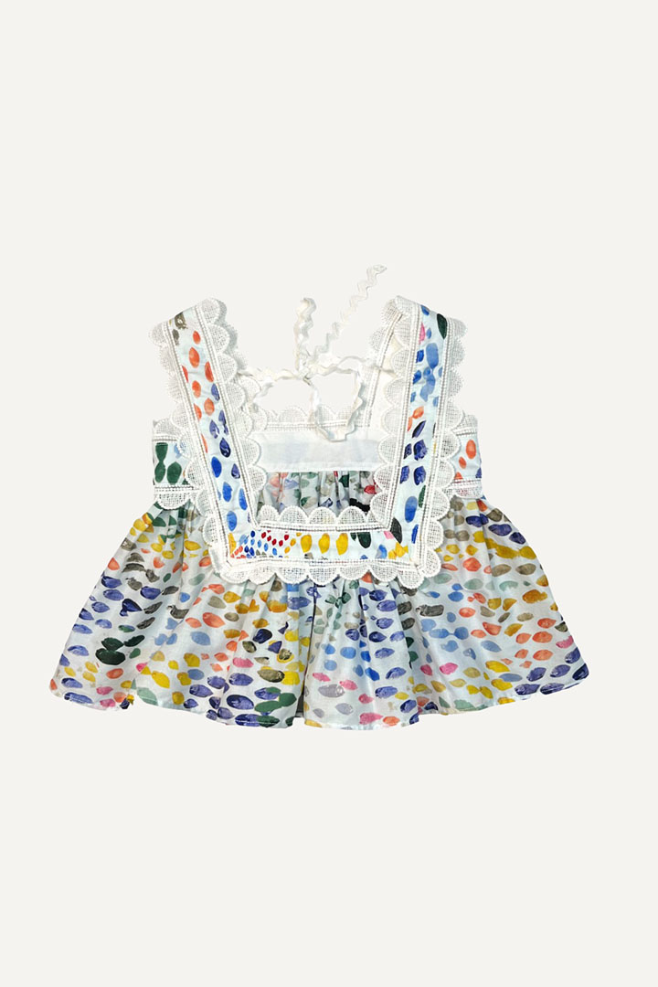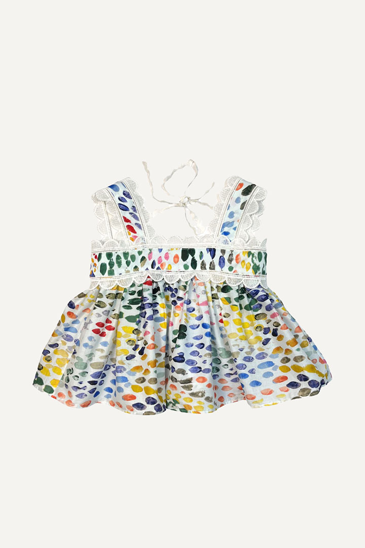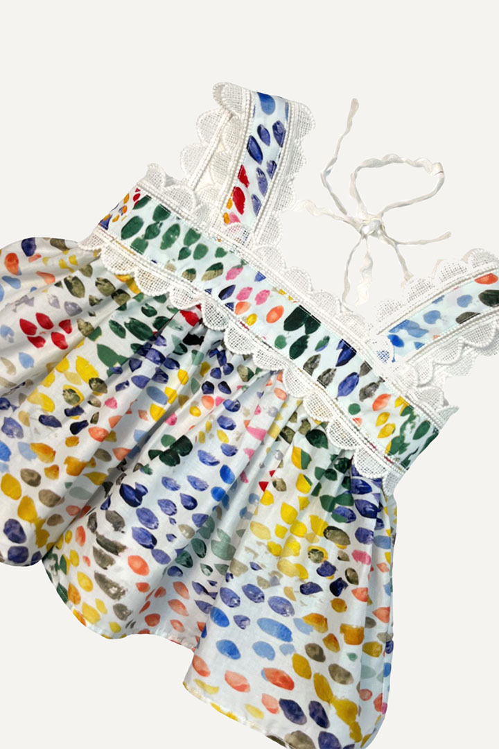 A TiA CiBANi exclusive style, only available here on our website! Embrace summer days with this charming blouse! Expertly crafted from this season's Paphos Mosaic Print. This flowy blouse features ric rac ribbon ties to tie into a sweet bow at the back of the square neckline. Beautifully finished with embroidered lace ribbon trim throughout.
