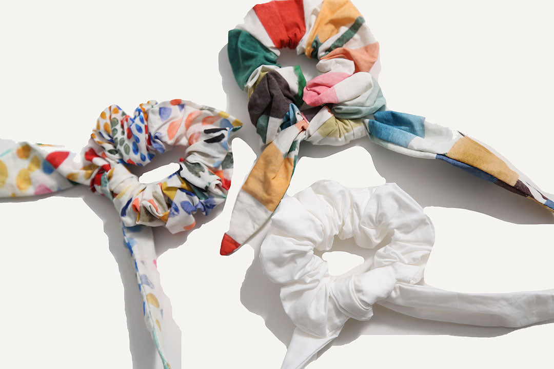 A set of 3 scrunchies, how exciting! These petite classic scrunchies are perfect for all sorts of up do hairstyles. With two scrunchies in the season's prints and one scrunchie in the Classic Cotton Poplin, the combinations are endless.