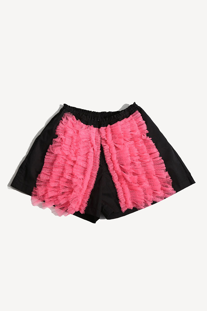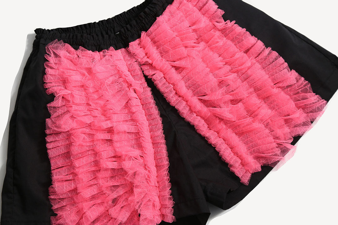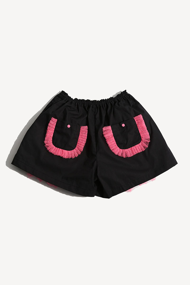 With tiers and tiers of tulle, these shorts are over the top in the best way! Featuring multiple tiers of pleated Argyle Tulle at the front of these Classic Cotton Poplin shorts, these high-waisted shorts create a voluminous look that’s both playful and chic. The design includes handy in-seam pockets and snaps at the tulle trimmed back pockets for added flair and functionality. Easy, relaxed fitting girl’s shorts with an elastic waistband for comfort and ease of wear. A true summer statement piece, pair it with the Toula Tiered Ruffle Blouse for the full tulle ensemble.